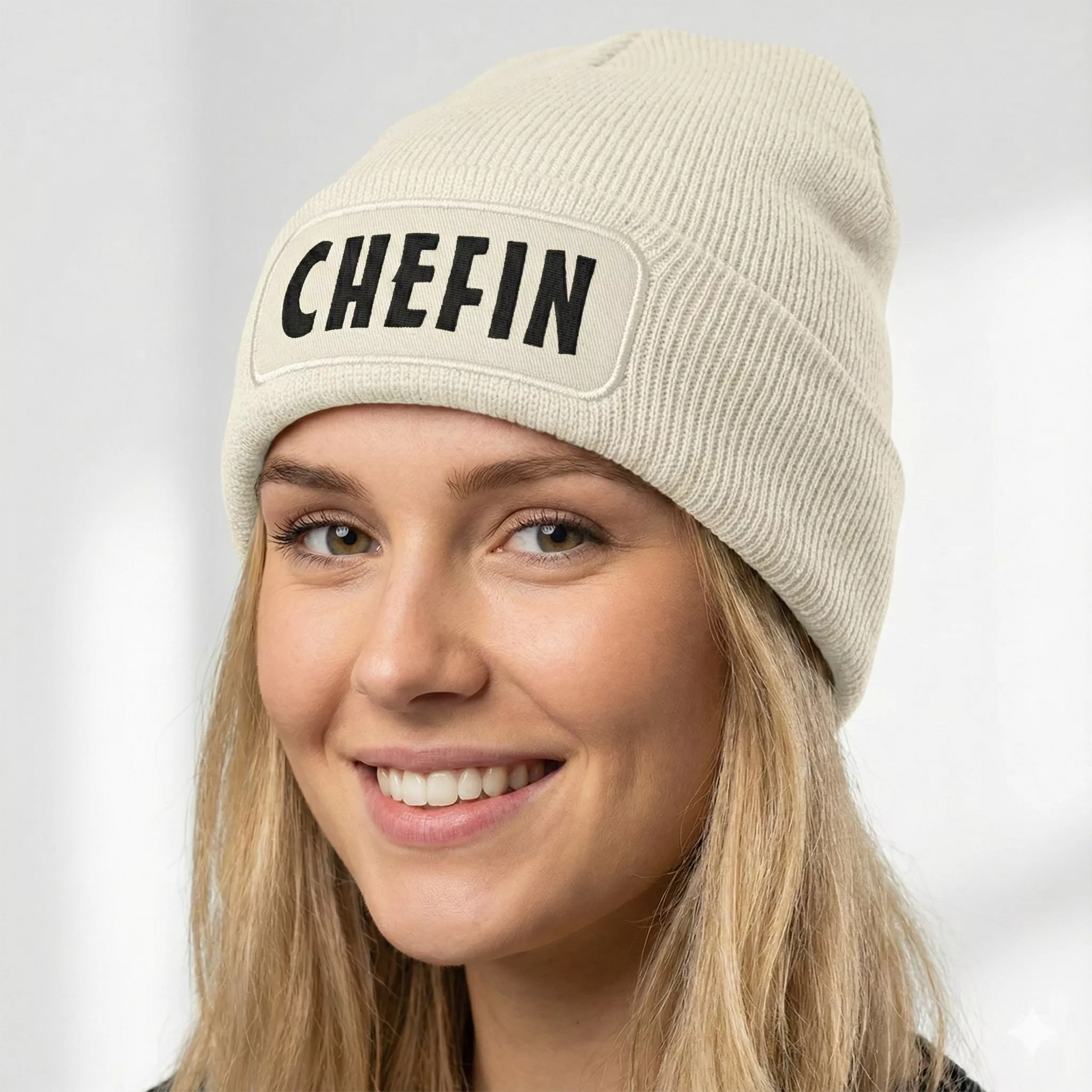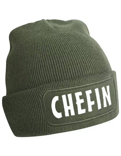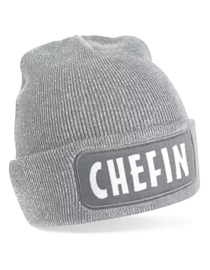 Stylische Beanie Mütze mit dem markanten Spruch „CHEFIN“.