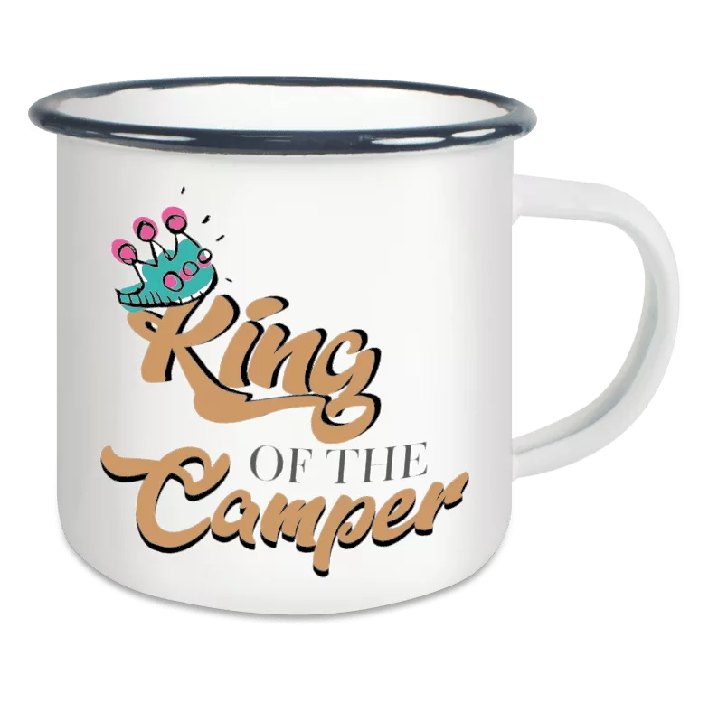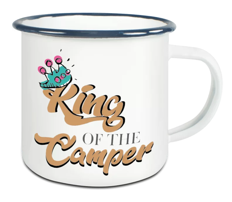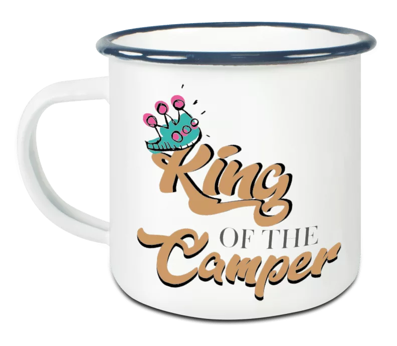 Unser Emaillebecher mit coolem Campingmotiv ist der perfekte Begleiter für deine nächste Outdoor-Expedition. Hol dir jetzt deinen!“