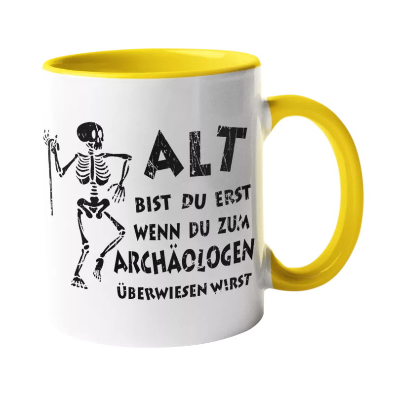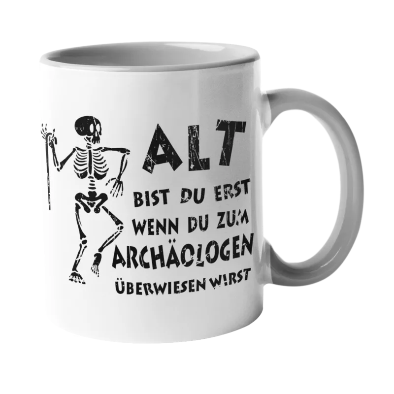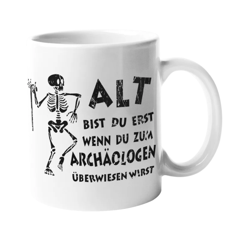 „Alt bist du erst, wenn du zum Archäologen überwiesen wirst“. Perfekt für alle, die Humor schätzen! Ideal als Geschenk oder für dich selbst. Hol dir jetzt deine Tasse und genieße jeden Schluck mit einem Augenzwinkern!“