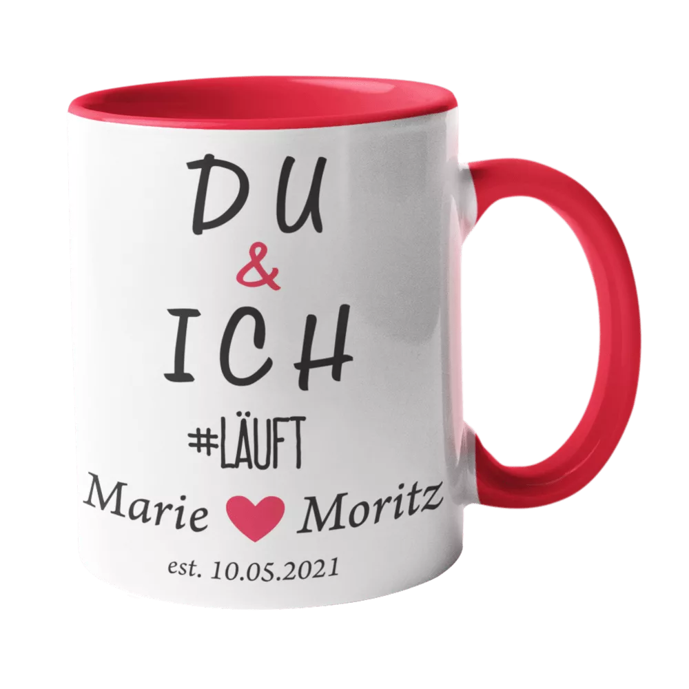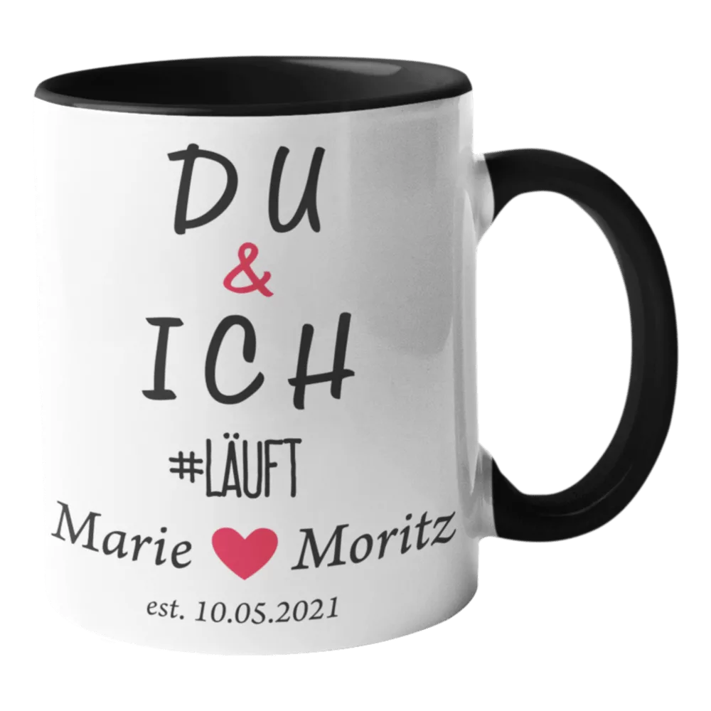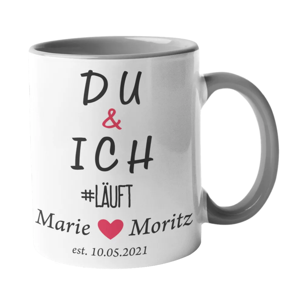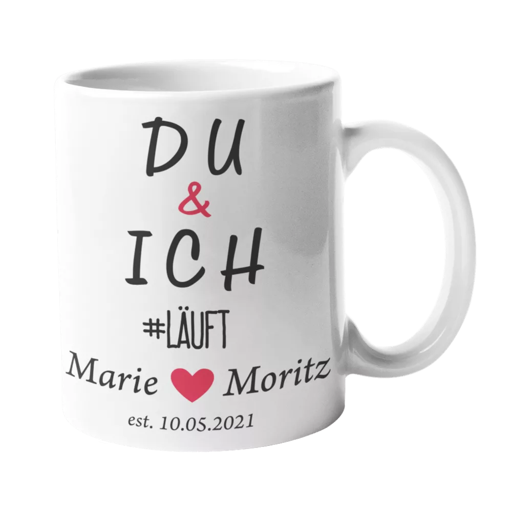 Stylisch & bedeutungsvoll! Die bedruckte Tasse „Du & Ich #läuft“ bringt gute Laune in jeden Morgenkaffee. Perfektes Geschenk für Partner & Lieblingsmenschen!