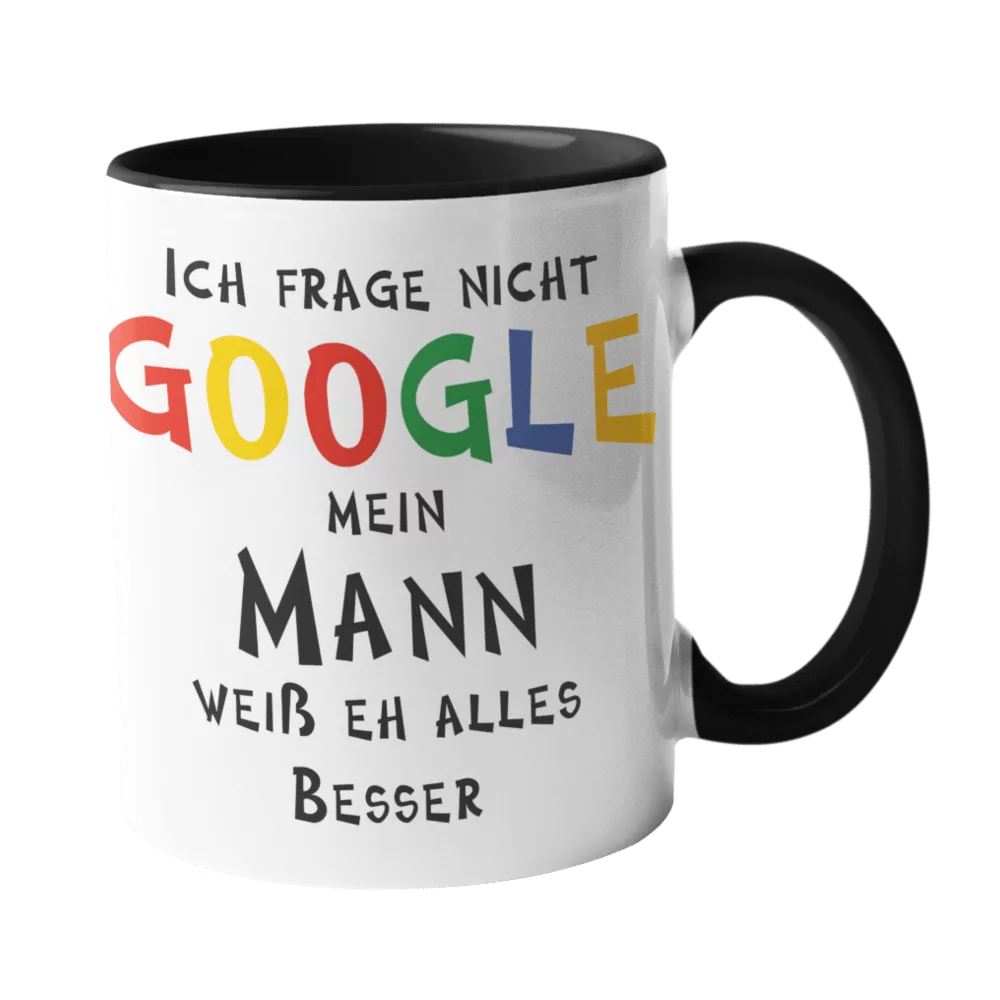 Bedruckte Tasse. Ich frage nicht Google, mein Mann weiß eh alles besser