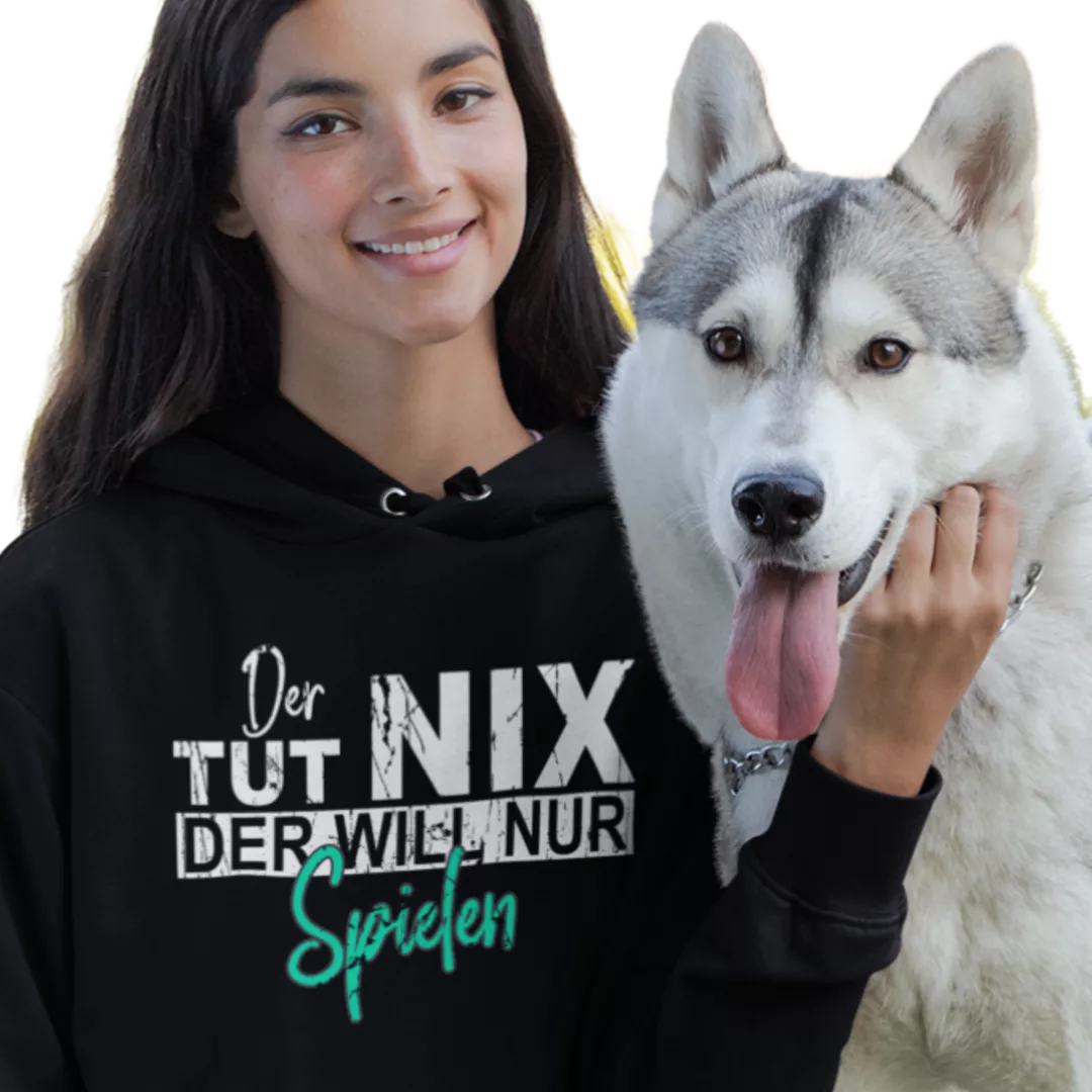 Hol dir den witzigen Hoodie mit dem Spruch: Der tut nix, der will nur spielen!