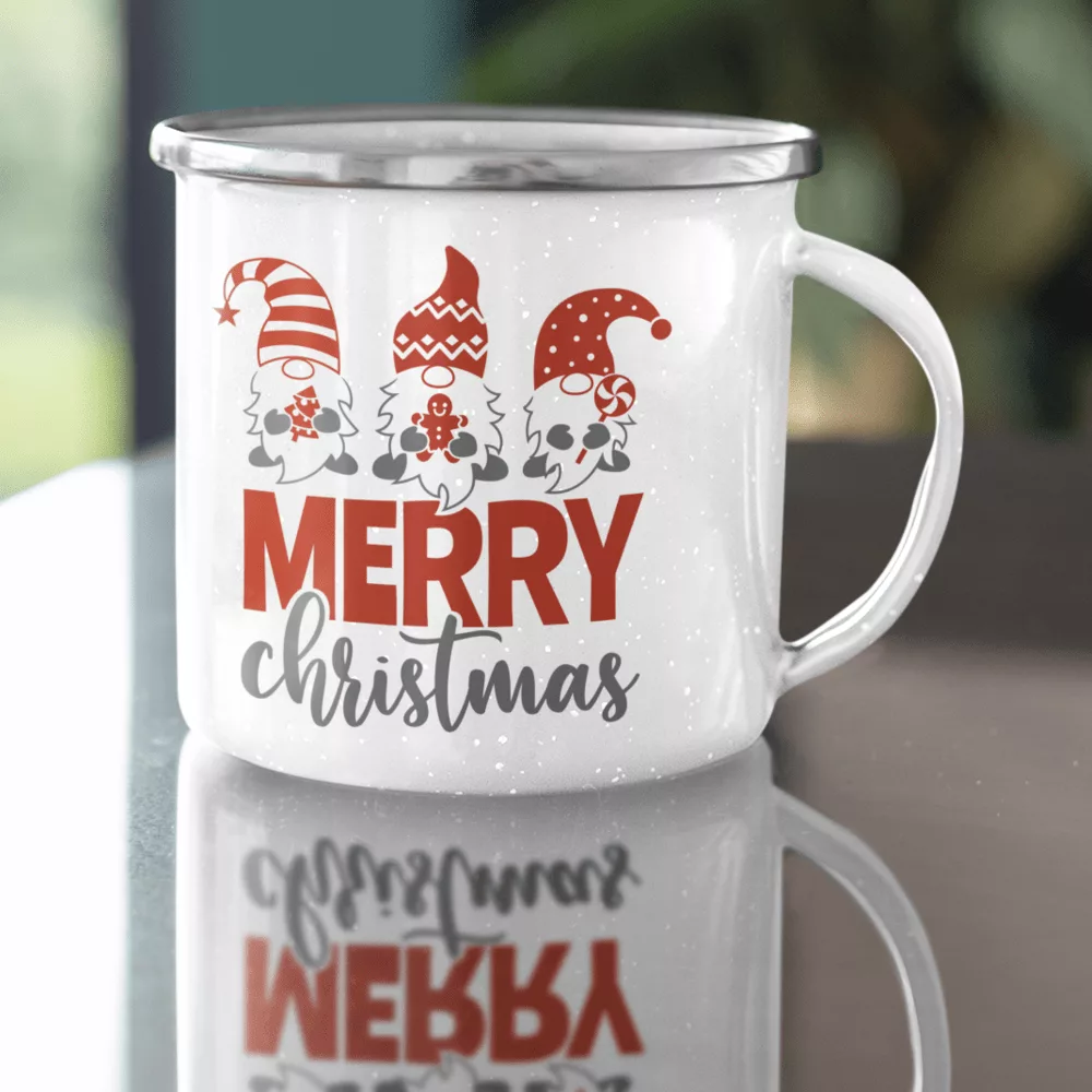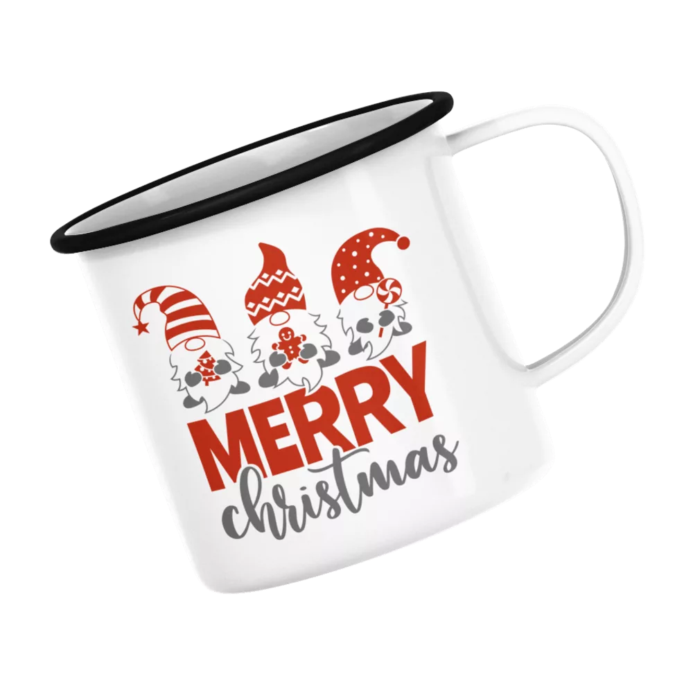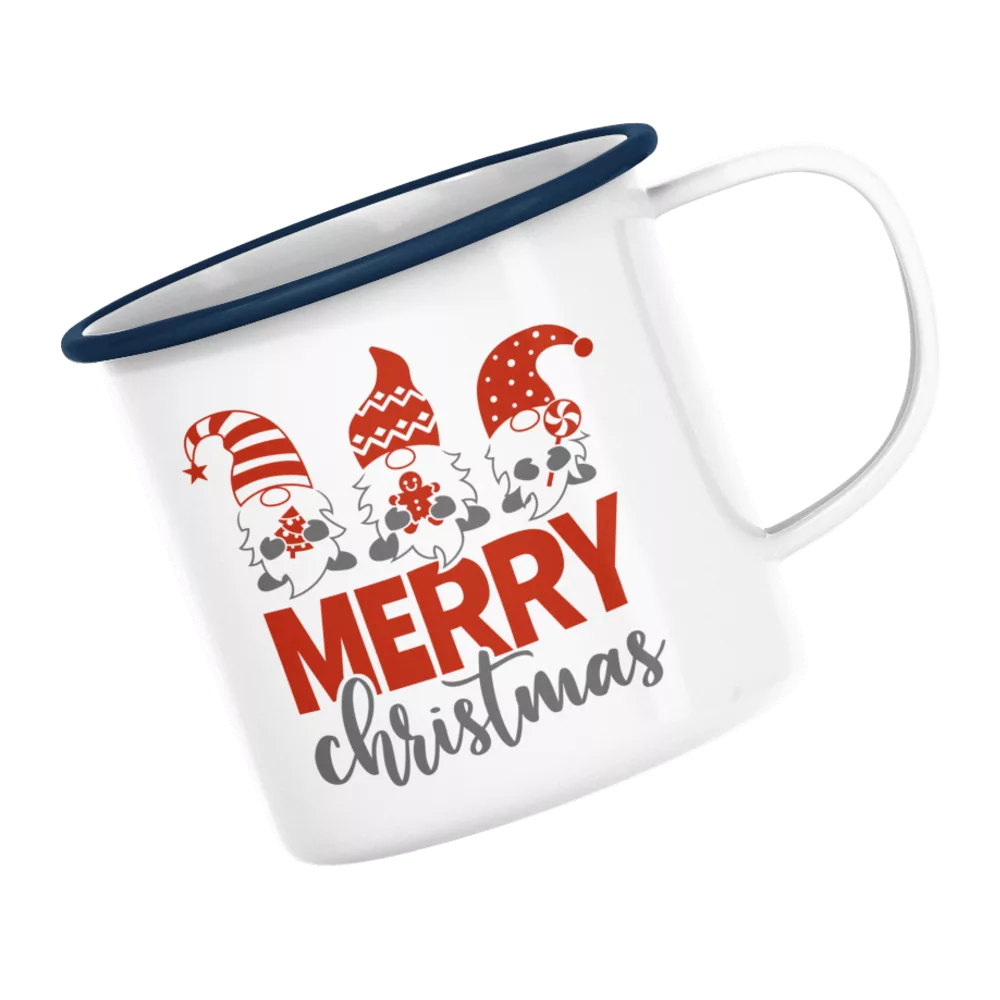 Emaillebecher. Weihnachtsgnome Merry Christmas