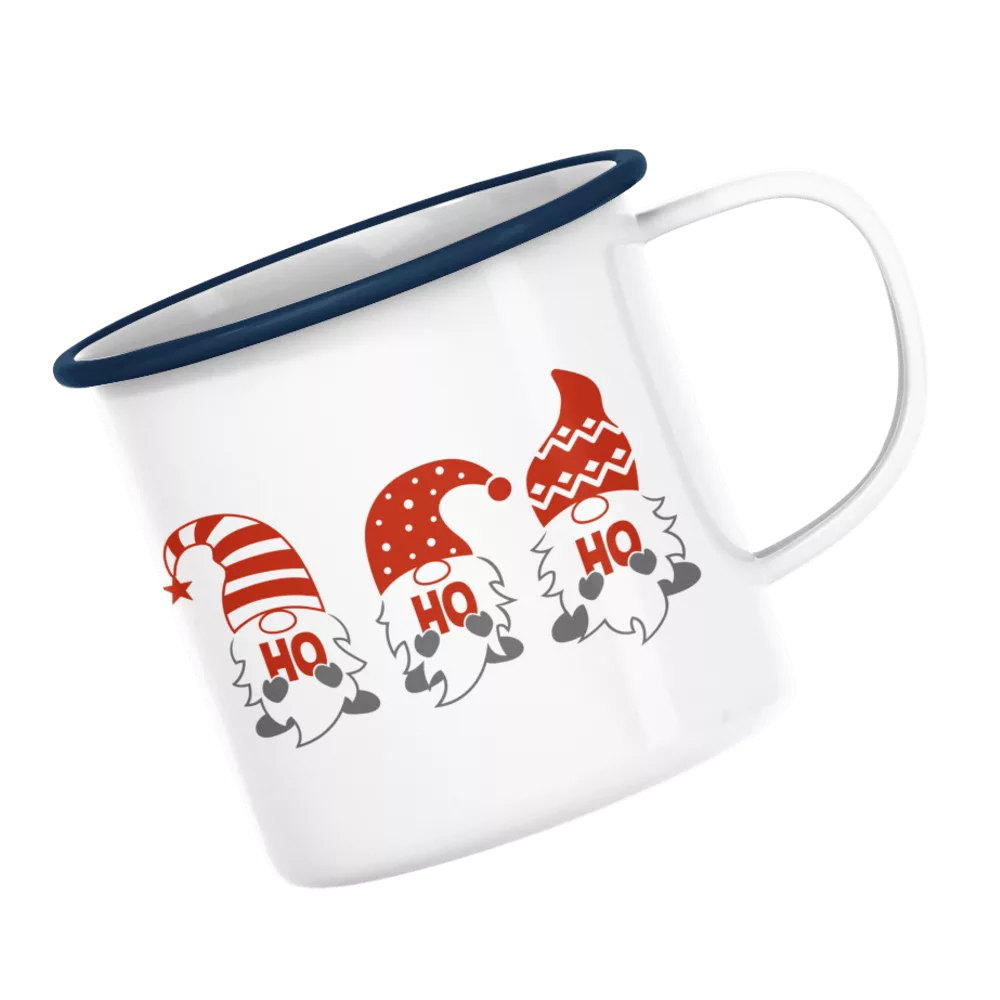 Emaillebecher. Weihnachtsgnome HO HO HO