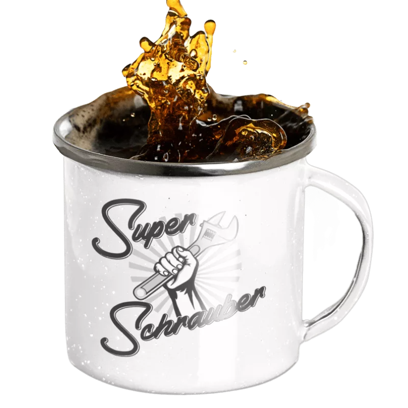 Unsere Emaillebecher bestehen aus Metall mit einer robusten Emaille-Beschichtung und einem besonders haltbaren, beidseitigen Druck.