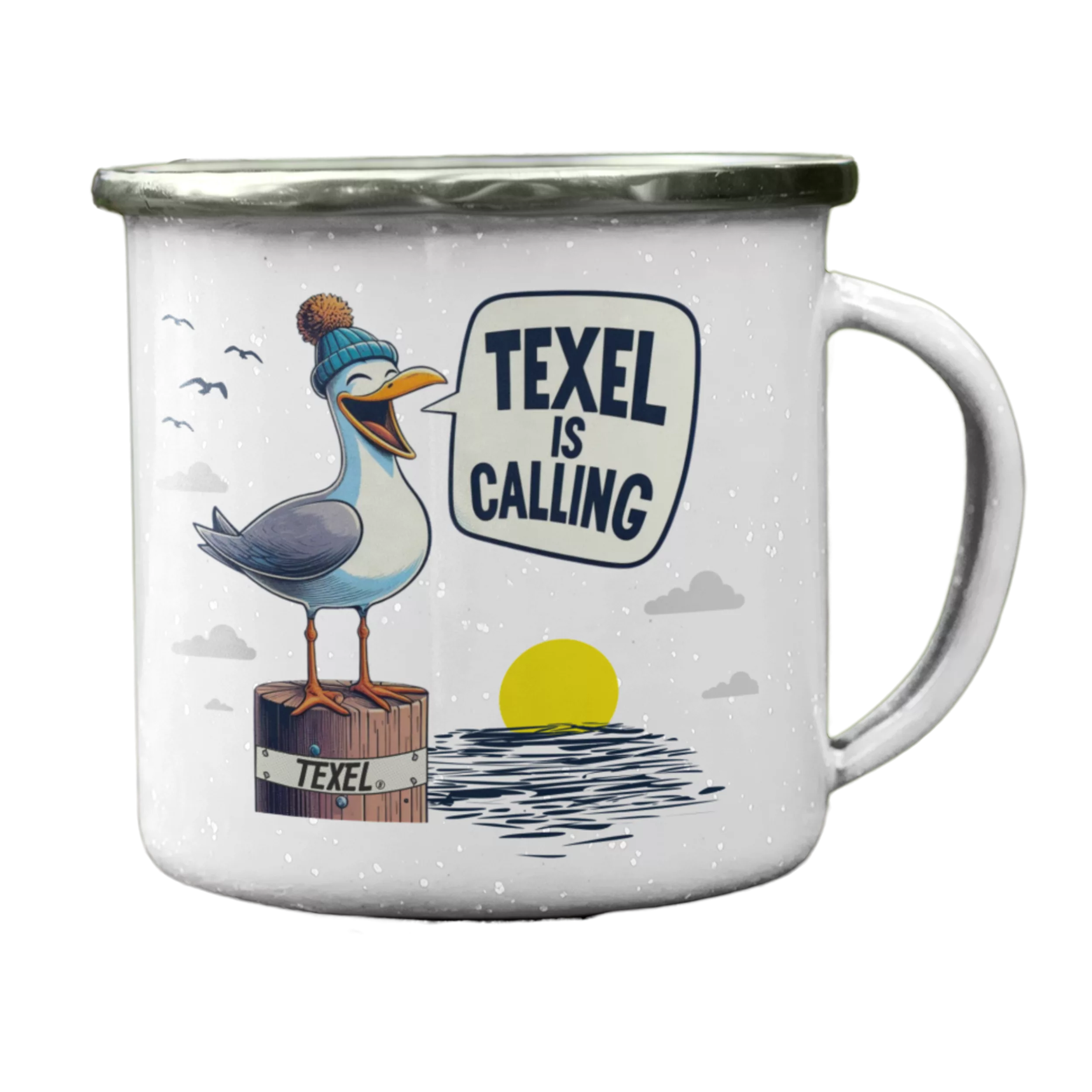 Neu! Jetzt mit 3 verschiedenen Randfarben. Motiv: Texel is calling. Der Sehnsuchtsbecher.