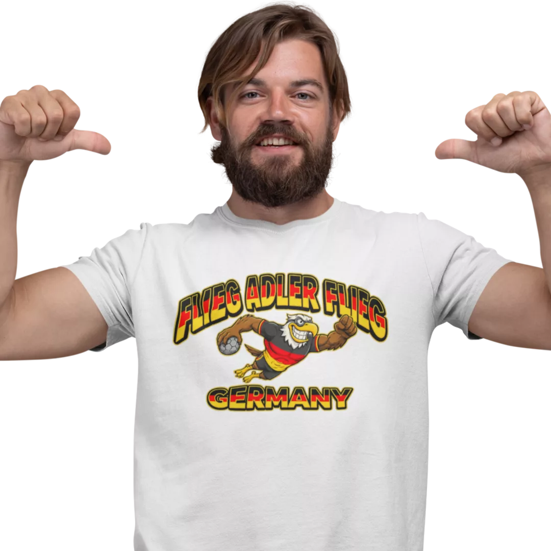 Ideal für Deutschland-Handballfans: Das Shirt passt perfekt zu Spieltag, Halle, Public Viewing und Fan-Momenten. Mit diesem Fan T-Shirt setzt du ein klares Zeichen: „FLIEG ADLER FLIEG“ sitzt mittig auf der Brust und wirkt sofort – egal ob im Stadion, beim Public Viewing, im Training oder im Alltag. Das Design ist bewusst clean gehalten, damit der Spruch im Fokus steht und zu jedem Outfit passt.