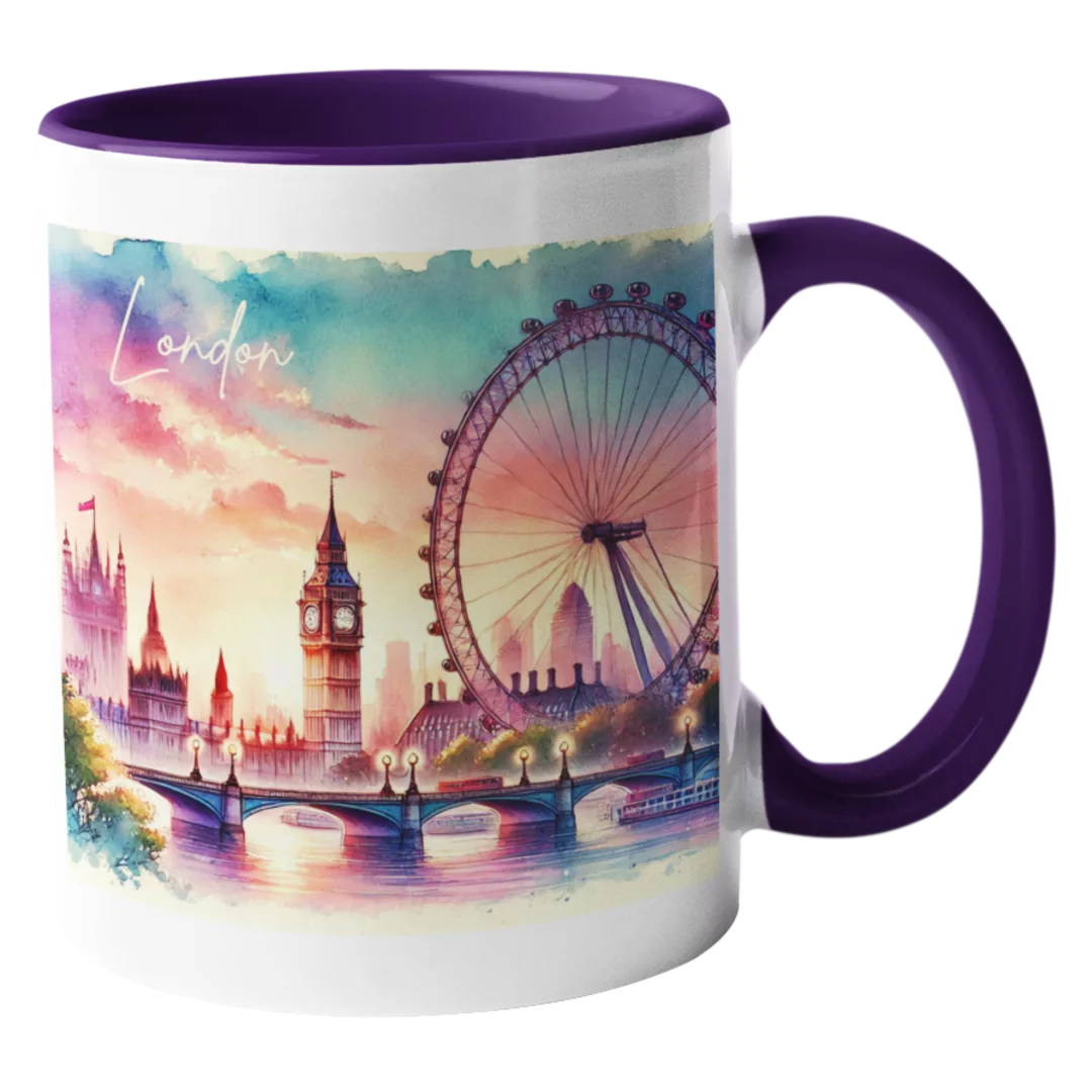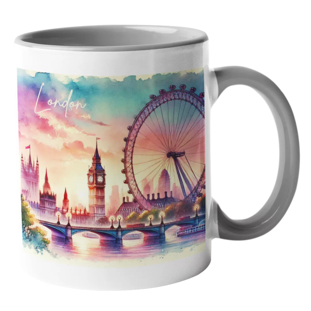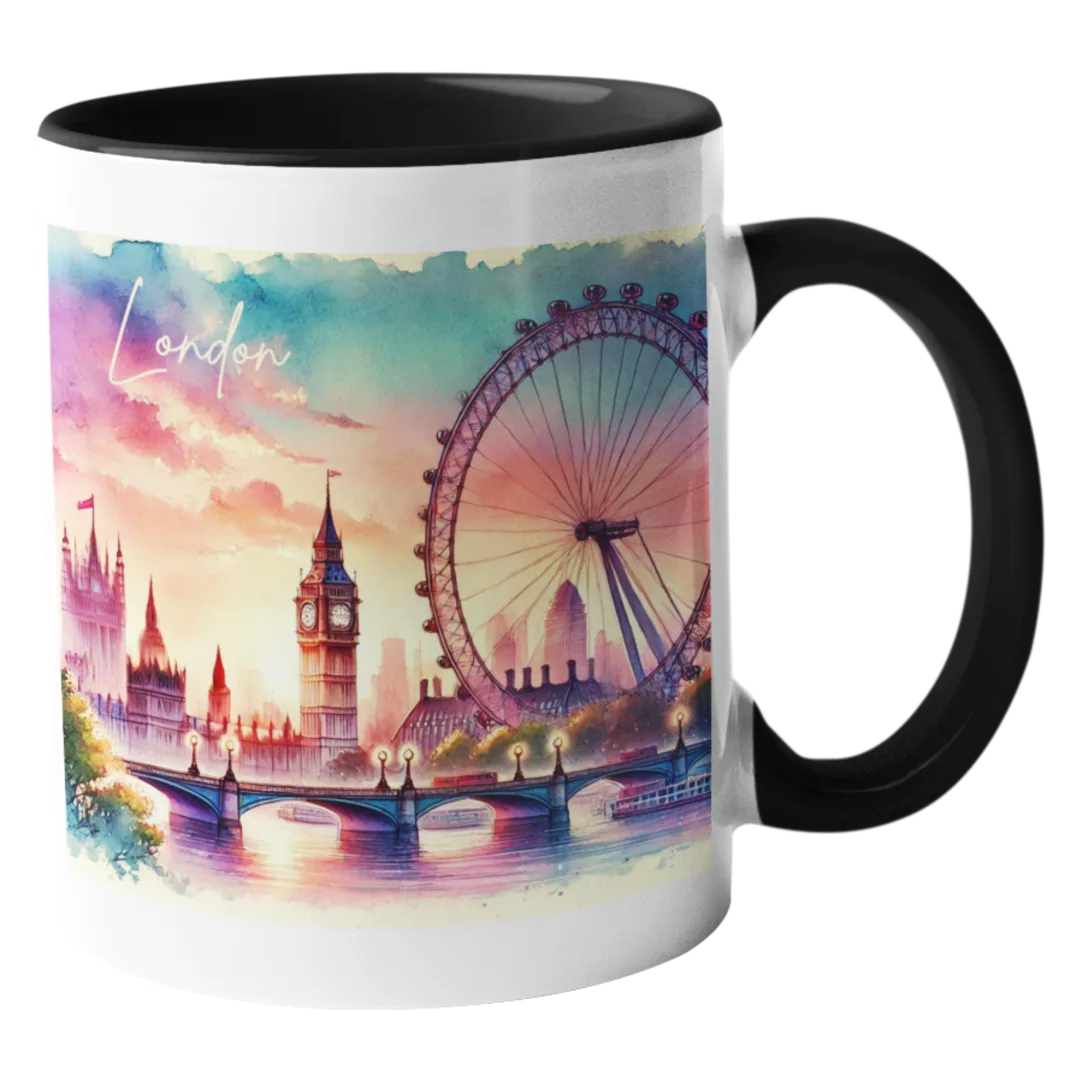 London Tasse im Aquarell-Stil – Hol dir ein Stück London nach Hause! Diese Tasse mit kunstvollem Aquarell-Design ist ein Must-Have für Sammler und Kaffeegenießer.