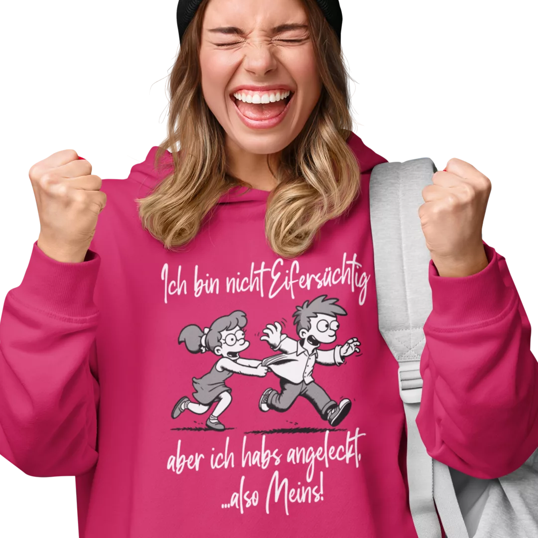 Hol dir den witzigen Hoodie mit dem Spruch: Ich bin nicht eifersüchtig, aber ich habs angeleckt, also Meins!