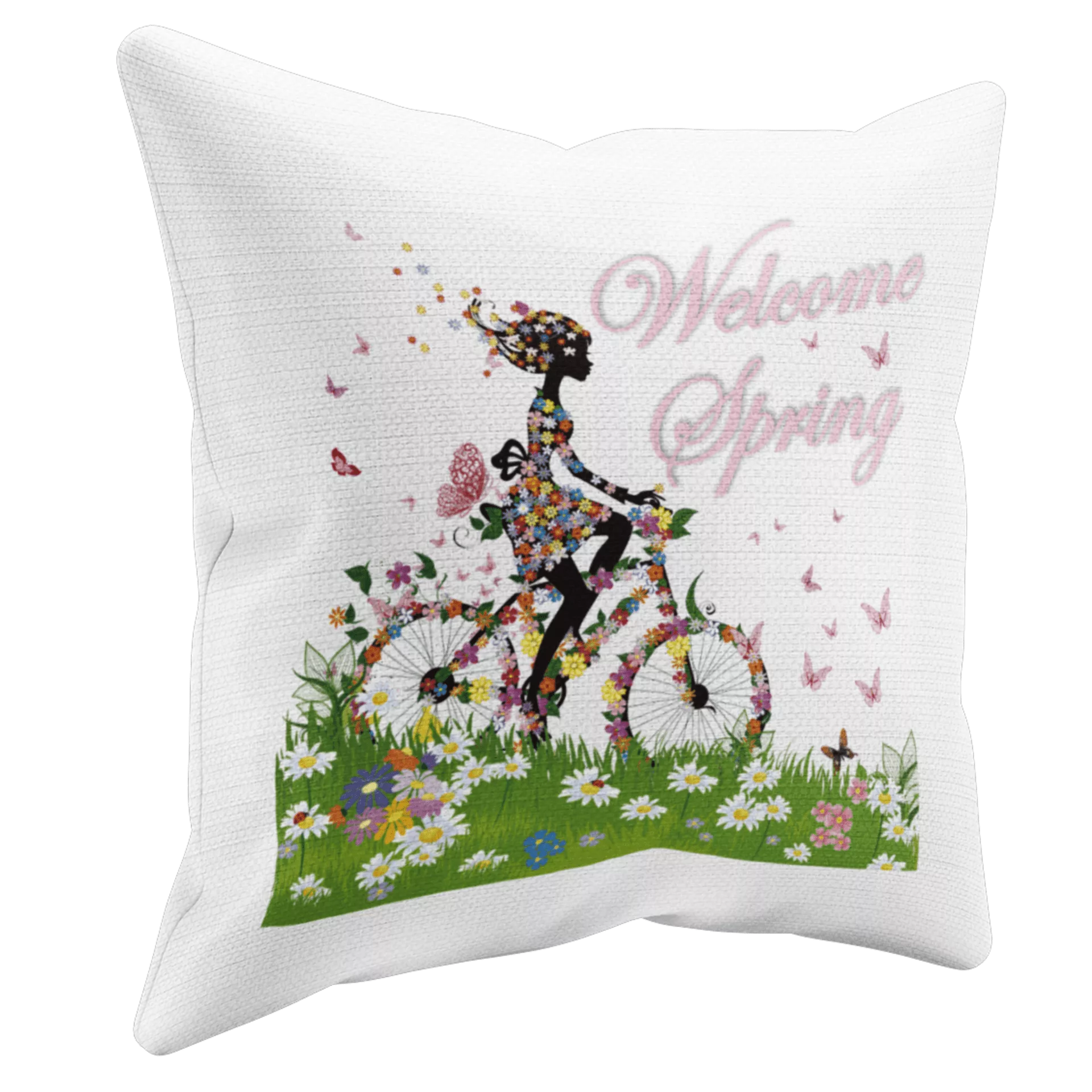 Bedrucktes Kissen. Berüßen wir den Frühling mit einem Wunderbaren Kissen. Welcome Spring