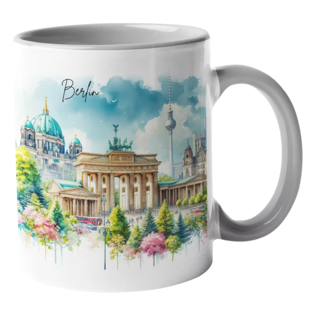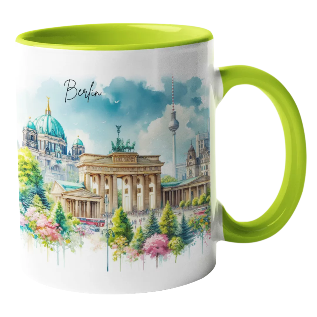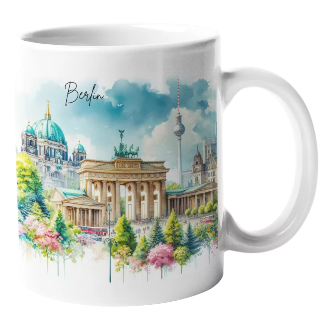 Unsere Aquarell-Städtetasse Berlin bringt den Charme der Hauptstadt in deine Tasse. Perfekt für jeden Tag oder als Geschenk für Freunde!