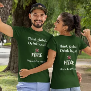 Dieses T-Shirt mit dem Spruch „Think global. Drink local.“ ist das perfekte Statement für alle, die ihr Herz an regionales Bier verloren haben. Locker, modern und ideal als Geschenk für echte Bierfans.