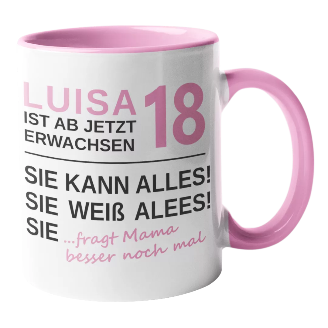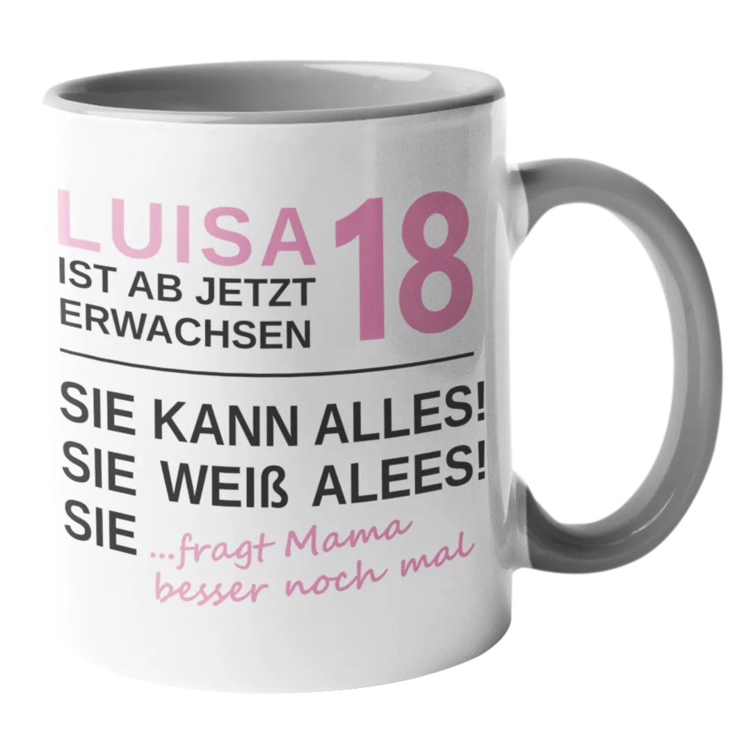 Feiere deinen 18. Geburtstag mit unserer witzigen. Endlich 18, weiß alles, kann alles… Tasse! Perfekt für Kaffee oder Tee und ein tolles Geschenk für alle, die ihren neuen Lebensabschnitt mit Humor genießen wollen. Hol dir jetzt dein Stück Spaß!