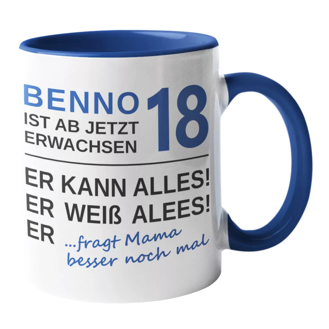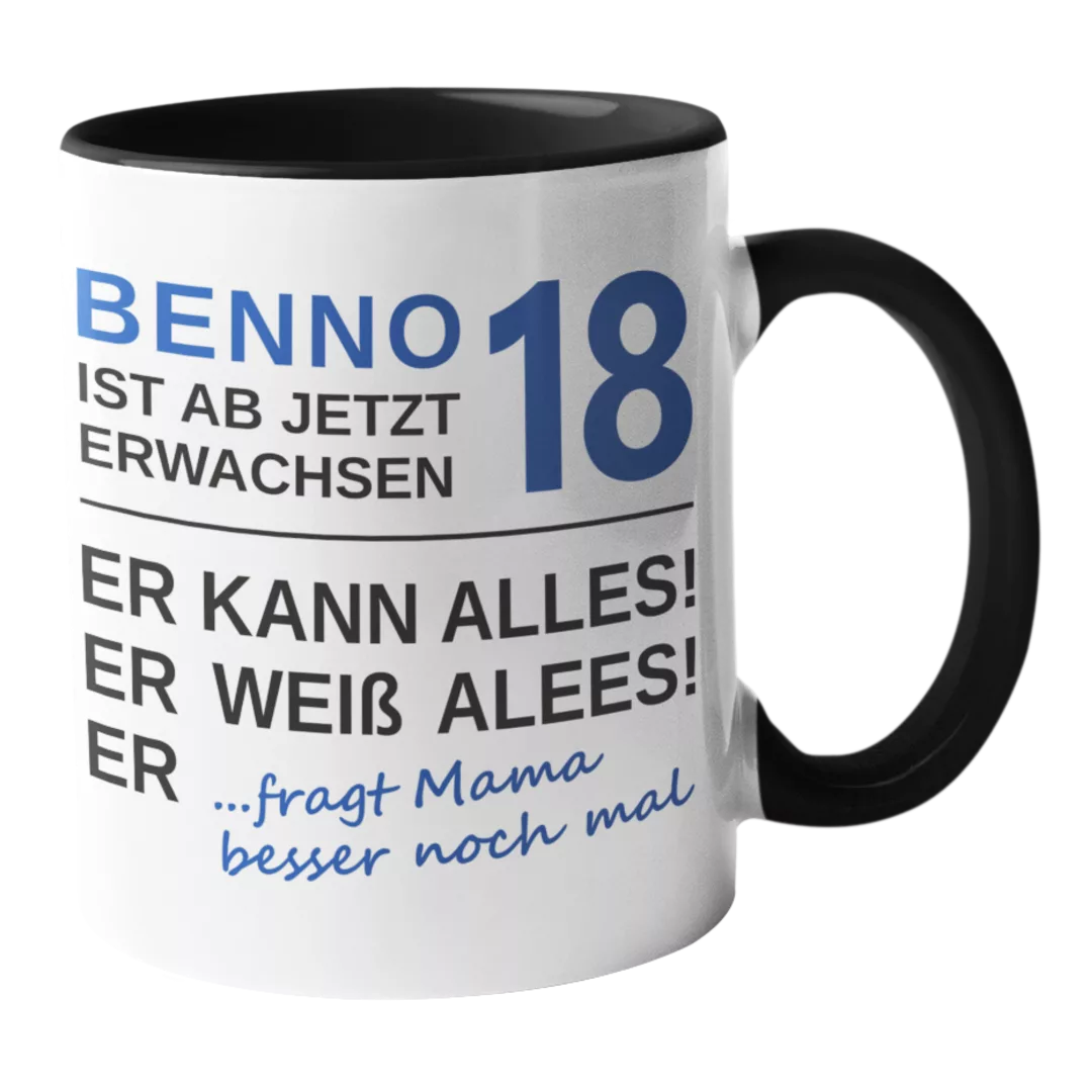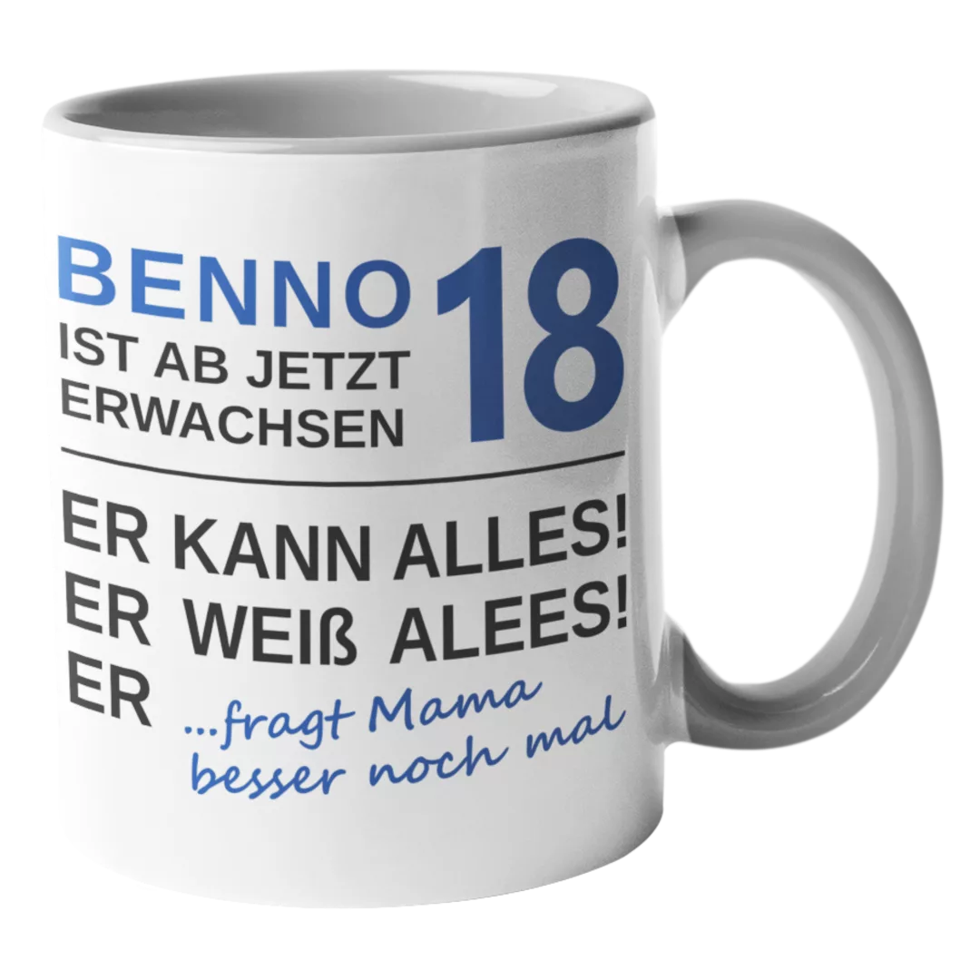 Feiere deinen 18. Geburtstag mit unserer witzigen. Endlich 18, weiß alles, kann alles… Tasse! Perfekt für Kaffee oder Tee und ein tolles Geschenk für alle, die ihren neuen Lebensabschnitt mit Humor genießen wollen. Hol dir jetzt dein Stück Spaß!