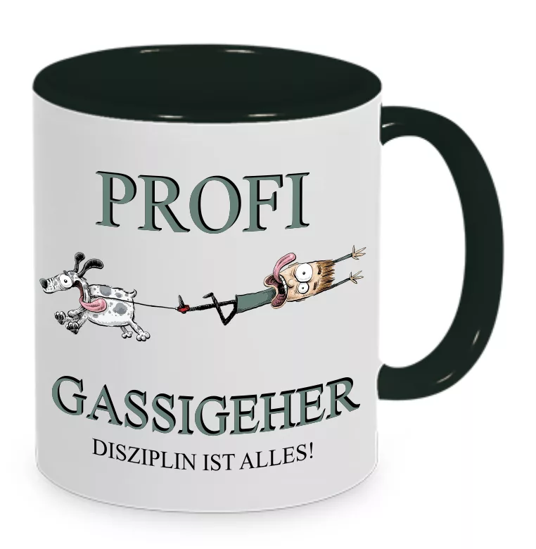 Mit dieser Tasse zeigst du mit einem Augenzwinkern, wer hier die Leine in der Hand hat: „PROFI GASSIGEHER“. Das Motiv mit den zwei Hunden ist ideal für alle, die täglich mit Fellnasen unterwegs sind – egal ob privat, im Verein oder sogar beruflich.
