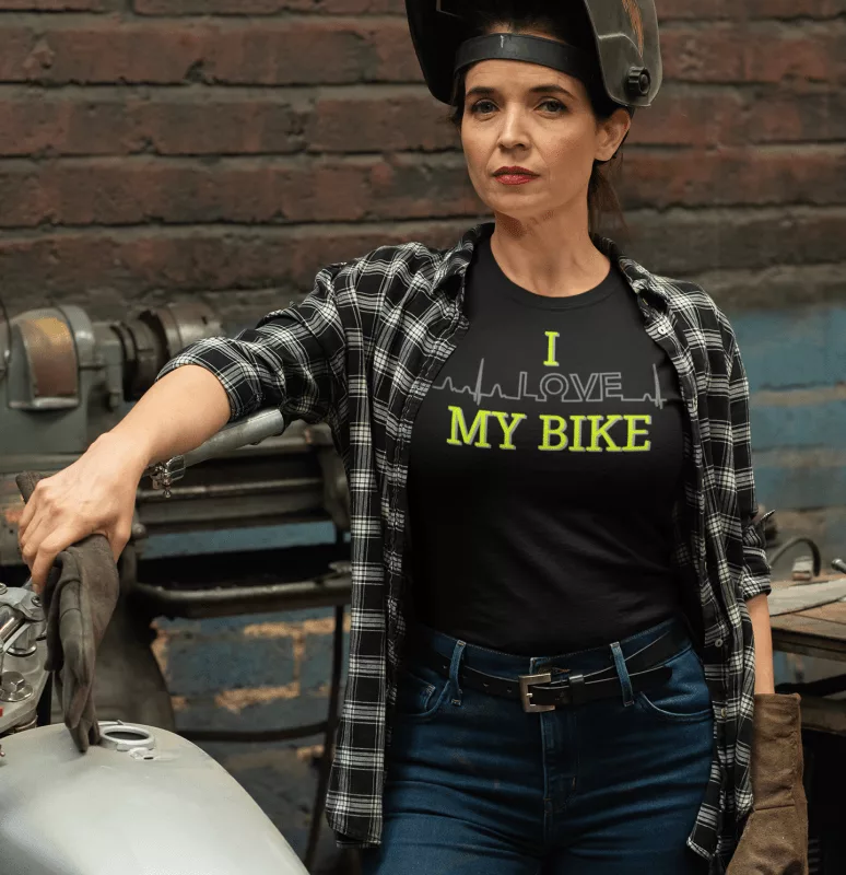 Entdecke unser stylisches Motorrad T-Shirt mit dem coolen Aufdruck “I love my bike”! Perfekt für leidenschaftliche Bikerinnen, die ihre Liebe zum Motorradfahren zeigen möchten. Bequem, modisch und ein echtes Must-Have für jede Motorradfahrt! Hol dir deins jetzt!