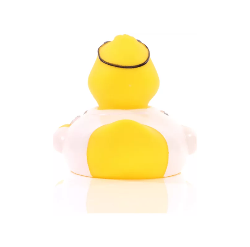 • Quietschvergnügte Badeente im lustigen Outfit